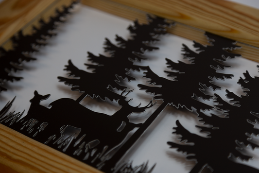 Quadro cervi foresta (Lamiera nera cornice naturale)